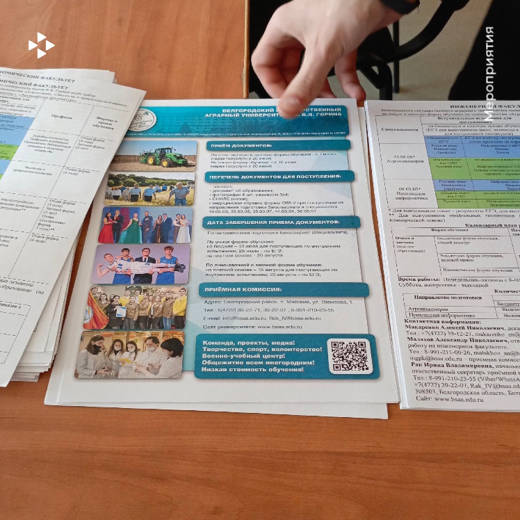 Также со студентами пообщались представители Белгородского государственного аграрного университета имени В. Я. Горина: профессор Коцарева Надежда Викторовна и доцент кафедры машин и оборудования в агробизнесе Казаков Константин Владимирович. Они рассказали об условиях поступления и обучении в университете.